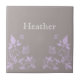 Sweet and dainty Butterfly Floral Tile with a muted dusty grey background and light purple butterflies and floral vine embellishments. This elegant floral tile would complement any decor! Easy to customise, simply add the personalised text of your choosing in the text fields provided. Click on the "Customise It" button to find additional personalisation options.