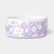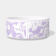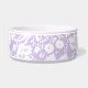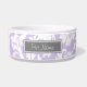 Fun and modern dog bowl in light pastel lavender purple and white vintage floral damask pattern. Personalise this dog bowl with your own text for a unique food or water bowl for your puppy.