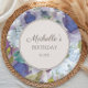 Lilac Dusty Blue Watercolor Floral Birthday Paper Plate