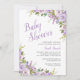 Affordable custom printed girl baby shower invitations. This pretty feminine design has a watercolor floral border with pastel purple flowers and greenery. Personalise the design with your baby shower party details. Reverse side has a purple watercolor stripe pattern or use the space to add additional text and photos. Click Customise It to choose any background colour and edit the text fonts and colours to create unique one of a kind spring or summer baby shower invitation for your baby girl.