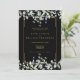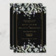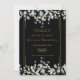A stylish all in one wedding invitation featuring pretty sage and lilac leaves that tumble over an elegant gold frame enclosing your wedding details set in classic elegant text on a black background. Personalise with all your special wedding day information on the reverse including your RSVP, accommodation, and additional details. Designed by Thisisnotme©