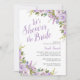 Affordable custom printed bridal shower invitations. This pretty feminine design has a watercolor floral border with pastel purple flowers and greenery. Personalise the design with your bridal shower party details. Reverse side has a purple watercolor stripe pattern or use the space to add additional text and photos. Click Customise It to choose any background colour and edit the text fonts and colours to create unique one of a kind spring or summer wedding shower invitation.