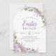 Affordable custom printed Easter brunch party invitations. This pretty feminine design has a watercolor floral border with pastel purple flowers and greenery. Personalise the template with your event details. Reverse side has a purple watercolor stripe pattern or use the space to add additional text and photos. Click Customise It to choose any background colour and edit the text fonts and colours to create unique one of a kind Easter dinner invitation.