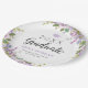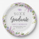 Affordable custom printed graduation party paper plates. This pretty feminine design has a watercolor floral border with pastel purple flowers and greenery. Personalise the template with your grad details. Use the design tools to choose any background colour and fonts you like or upload your own photos to further customise the design.
