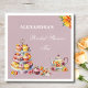 Celebrate in style with this personalised Bridal Shower Tea Party paper napkin, perfect for creating a charming and whimsical atmosphere. This delightful design features a floral teapot, a delicate teacup, and a whimsical cake stand adorned with delicious cupcakes topped with soft pink and yellow icing and bright red cherries—all set against a soft lilac background. Elegant white typography and graceful script fonts add a touch of sophistication, making it an ideal accessory for any tea party bridal shower. Celebrate the bride to be with these beautifully crafted, whimsical paper napkins that bring sweetness and elegance to your special day.