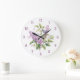 Lilac Flowers & Bird Botanical Illustration Wall Large Clock