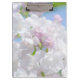 Macro photo of a tender lilac flowers of white and pink colours against the background of green leaves and blue sky. Textured photography.