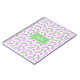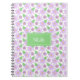 A photo notebook built with a lilac flower pattern. Customise it with your own text, background colour, among other options.