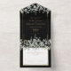 Lilac Foliage Black And Gold Monogram Wedding All In One Invitation