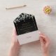 All in one wedding invitation featuring pretty watercolor greenery foliage and elegant modern gold typography on a black background. The invitation includes a perforated RSVP card that’s can be individually addressed or left blank for you to handwrite your guest's address details. Designed by Thisisnotme©
