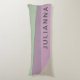 This stylish custom body pillow a modern geometric colour blocking with diagonal lines and triangles in lilac purple and mint green, personalised with your name. Great gift idea!