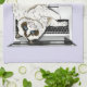 Lilac Laptop Cat Funny Cat Tea Towel