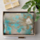 turquoise background antiqued white flowers