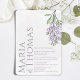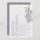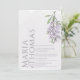 This design features an elegant, modern wedding invitation with a calligraphy, floral, flowers wedding invitation, with a lilac, lavender, and purple wildflower, with a minimalist, watercolor flower plant