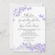 Pretty lavender lilac mountain view destination wedding invitation with watercolor mountains and purple spring blossoms.