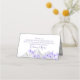 Purple lilac and mountain range watercolor place card to seat your guests. Lavender and grey spring wedding folded seating card with line for hand writing names and table number and personalised names and message on reverse side.
