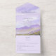 Elevate your invitation experience with our Lilac Night Sky Mountain Landscape All in One Invitation. This innovative design seamlessly combines an invitation, RSVP card, and envelope into one convenient foldable piece. The interior features the invitation text while below, a perforated section houses the RSVP card for easy removal.