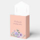 Add a touch of elegance to your baby shower with this Personalized, Lilac Floral Baby Shower favor box. Featuring beautiful watercolor lavender peony flowers intertwined with soft greenery against a soft peach background, this lavender baby shower favor box is the perfect way to say "thank you" to your guests. Its chic and sophisticated design, with delicate lilac hues, makes it a stylish addition to your baby shower decor. Give your guests a memorable keepsake with these elegant favor boxes that add charm to your special day.