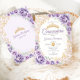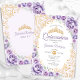 Lilac purple gold Quinceanera celebration invitation. Features, script font, gold butterflies, watercolor roses and tiara. Perfect for an elegant princess style glam celebration. Personalise with your own details. Printed Zazzle invitations or instant download digital printable template.