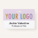 Personalise our professional PVC name badge with your company logo, employee name, job title, or other custom text. It's made of durable PVC plastic. Designed in light purple and other colours with a modern minimalist design by MISOOK. All colours are customisable. Available with a lanyard, metal clip, or retractable reel. The dimensions are 3.38 inch x 2.13 inch. No minimum order quantity and no setup fee.