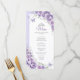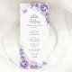 Lilac purple, silver and white Quinceanera celebration slim menu card. Features, script font, silver butterflies, watercolor roses and tiara. Perfect for an elegant princess style glam celebration. Personalize with your own details.