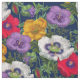 Lilac Red White Yellow Poppies & Green Leaves Fabric