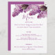 A Lilac Spring Garden Wedding Menu Card for your Reception Accessories. Designed with delicate lilac flowers on a white background. The menu text includes: Appetizer, Entre and Dessert Selections on the front; with the Bride and Groom's names and Wedding Date on the reverse on a matching deep lilac background. To personalise, simply insert your Wedding Menu Details into our easy template, replacing the sample text. Be sure to view the complete Lilac Spring Garden Wedding Collection for matching cards and accessories.
