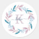 Lilac Watercolor Floral Wreath Monogram Classic Round Sticker