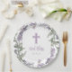 Lilac Wild Flower Wreath & Cross Baptism God Bless Paper Plate