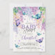 Lilacs and Butterfly | Baby Shower Invitation - Elegant and modern floral baby shower invitation featuring watercolor lilacs and butterflies with lush green leaves with modern & free hand-lettered typography font. The reverse side of the invitation features lilac petals and butterflies. Personalise with your own wording/details! For further customisation, please click the "Customise it" button and use our design tools to modify this template. Not all artwork can be modified.