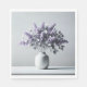 A contemporary vase is filled with lush purple lilac flowers and silver foliage elegantly arranged on a simple grey background