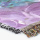 A quality printed throw has its advantages. This is a much finer weave throw than its loopier cousins, and though lighter, it is worth the investment for custom room accessorizing. The back is much prettier than the typical brown, and the fringe on the long sides very vivid, the selvage nicely done. Before photographing, I washed the throw in cold water, delicate, with a thicker woven throw the same size. On tumble dry low, this throw was dry in half the time as the other. This is a very practical quality if you use throws for furniture covers or to wrap up in frequently. The sleekness of the fabric makes it a great layer for accenting or protecting without the feeling of sitting on too much stuff. Perfect for napping or when you feel a light chill coming on. The color printing is beautiful and on this fabric, matched the design and color of my Photoshop image. This is an advantage for blending room fabrics and colors. The fringe on the short sides prints the colors from the design image and therefore varies from the side fringe. I streaked a white fractal line through the plaid pattern to give the illusion of weaving. This printed as crisp as an illusory thread, and put some white in the short side fringe, showing another advantage of print vs loomed- for artistic purposes, line lines, detail, and color integrity can be planned and preserved. My loomed throws have color limitations and more of a needlepoint texture. Print throws reproduce an exact image. The throw felt a little stiff straight out of the package, but this went away in the first delicate wash. Of course I searched the wash water for ink or bleeding and there was none.