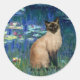 Lilies in shades of royal blue, by Claude Monet, one of several lily masterpieces painted by Monet, now adapted to include a seal point Siamese cat.
