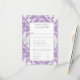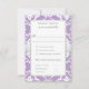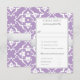 This wedding response card features a lavender damask floral pattern with a white lily motif inspired by the Art Nouveau era, symbolizing love and romance. A silver ribbon adds an elegant romantic touch and includes a meal selection option for the reception.