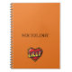 This customisable orange notebook features a comic-style heart decorated with the name "Lilly". You can customise the default text. This is a great back-to-school gift.
