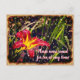 A slightly vintage looking photograph of a red and yellow day lily with drops of water on the petals and leaves. Customise the text if your wish.