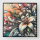 Lily Flower Design With Colourful Abstract Pattern Square Wall Clock