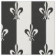 Black and white alternating stripes pattern with the fleur de lis, which is a simplified lily flower symbol used by French and European royalty, and a symbol of the town of New Orleans and the Mardi Gras festival in February after lent.