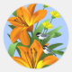 Lily Flowers and Chickadee Classic Round Sticker