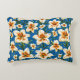 Floral throw pillow with a stylish organic lily floral design of white, lily flowers on a blue background. An elegant and contemporary throw pillow for your bedroom or favourite chair, accent pillow for your family room or living room couch, or a thoughtful modern home gift for any occasion.