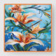 Lily Flowers on Blue Floral Background Square Wall Clock