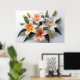 Poster of elegant lilies in soft shades of orange and white arranged with vibrant green leaves on a light background. The detailed petals and stamen add a realistic touch to the floral composition.