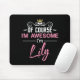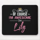 Of Course I'm Awesome I'm Lily - in mixed white and pink casual and decorative cursive font lettering with scroll embellishments and topped with a golden crown.