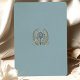 The typography harmonises a serif style with flowing script accents, lending a sophisticated, timeless tone to the wedding details. On the back, a charming monogram crest features a flowering tree encircled by laurel branches and ribbon, giving the piece a heraldic and custom touch. This design is perfect for nature-inspired, vintage-themed, or classically romantic weddings.