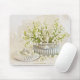 A still life of tiny white lily of the valley flowers in a dish surrounded by lace. Photography by Sandra Foster © - Sandra Foster Designs.