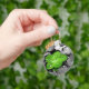 Black and White Keychain with one bright green Lily-pad in the middle.