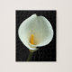 A beautiful, and challenging, lily puzzle showing a white lily flower on a black background.
