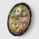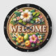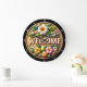 Add a touch of rustic elegance with this charming timepiece, featuring beautiful white lilies and a warm "Welcome" message, framed by a natural rope design. This delightful clock brings a fresh, inviting feel to any kitchen, living room, or entryway. A perfect accent for a cosy, charming atmosphere and a lovely gift.