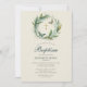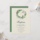 An elegant and sweet baptism invitation for a girl, featuring a wreath of lily of the valley flowers with a few whimsical butterflies. Classic calligraphy and a linen background round out the design. A stylish and classy invitation for a baby girl's baptism or Christening.