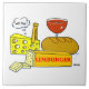 Limburger Cheese Lover Humourous Cartoon Kitchen ceramic tile or Trivet features a funny oon depicting two cheeses, a glass of red wine and a crusty loaf of french bread. Use to place under hot pots or pans, or place on the counter propped up against the wall to amuse visitors or guests at a tasting party you're hosting. If you're tiling your counter, cosider replacing one of the standard tiles with this one...especially if you're a Turophile!